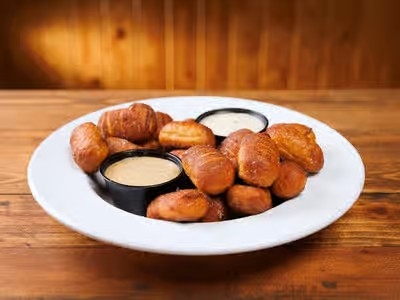 Enjoy a generous pile of salted pretzel bites served with queso blanco and pub mustard. Perfect for sharing with friends!